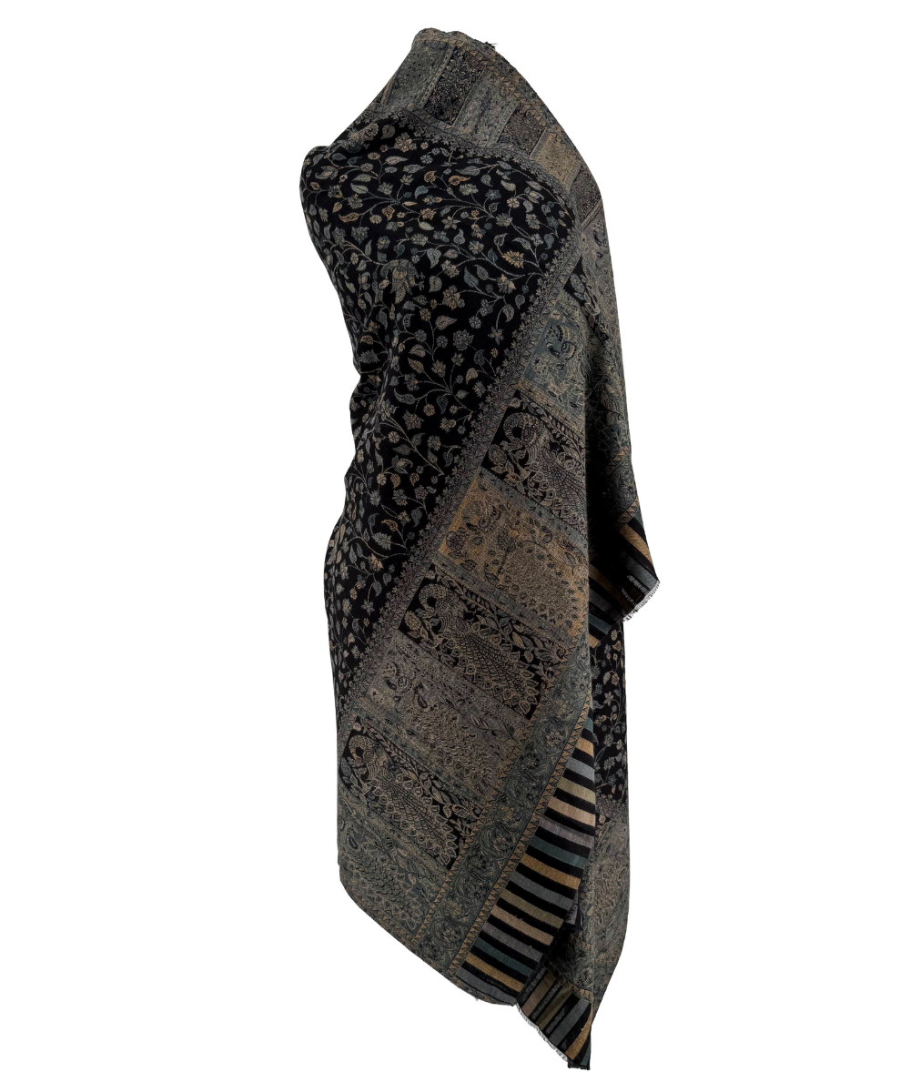 Elegant Black Handcrafted Shawl with Intricate Floral & Paisley Weave